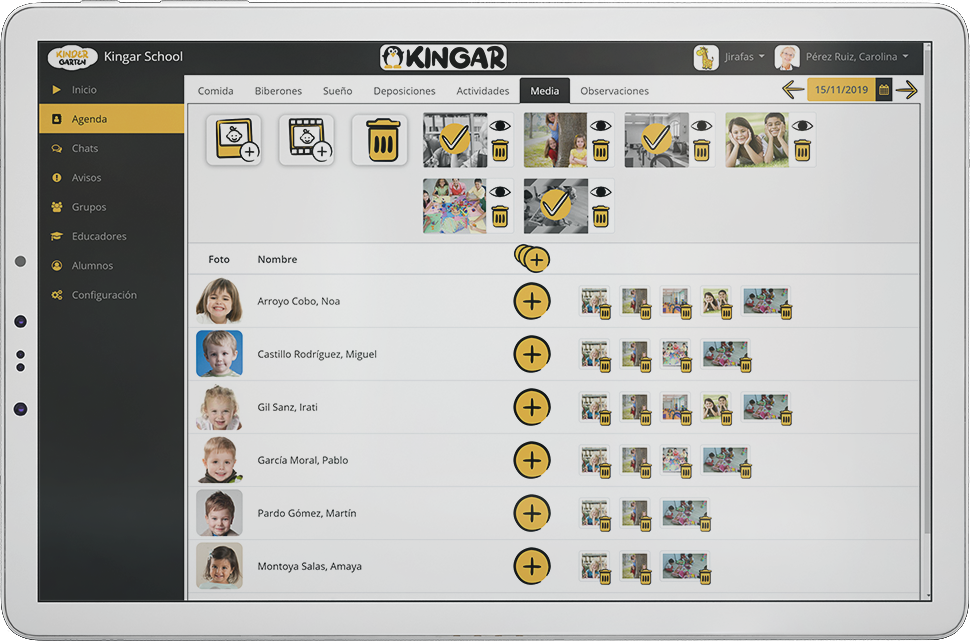 Fotografías y vídeos pueden ser asignados a los alumnos para que los vean los familiares, así podrán tener mayor información de las actividades realizadas.
