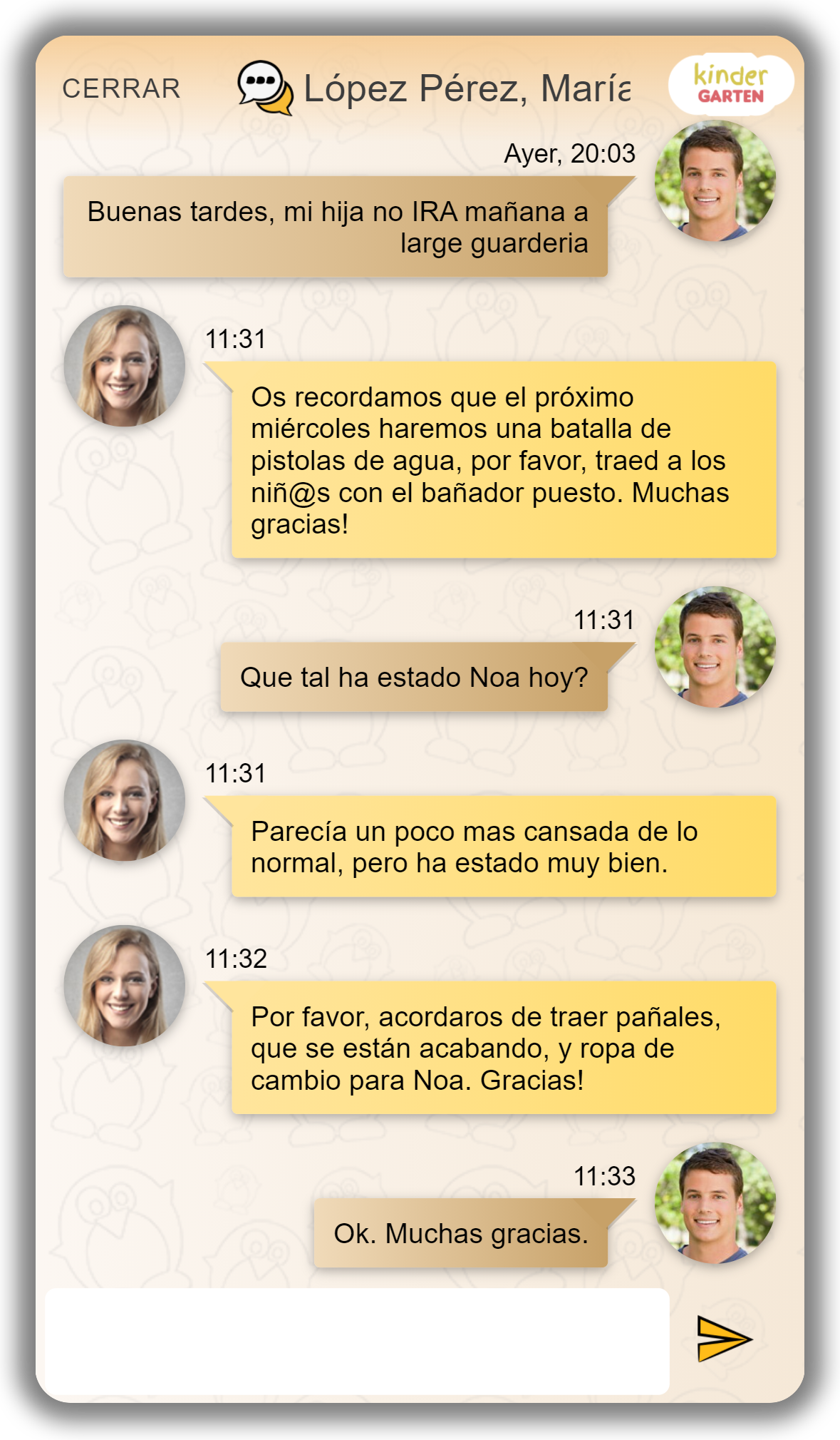 Permite mantener un canal de comunicación directo con los educadores del alumno, a través de mensajería instantánea.